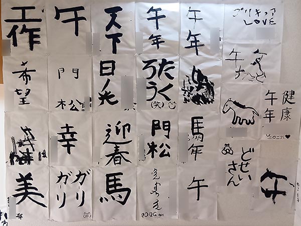 新しい年を迎え早速の書き初めです。 みんな思い思いの書き初めをしました。